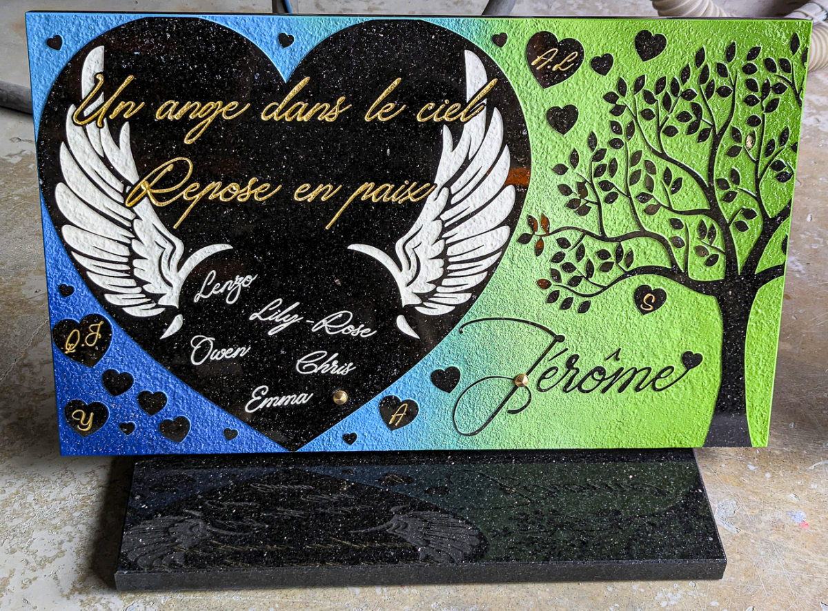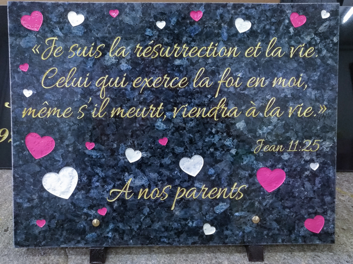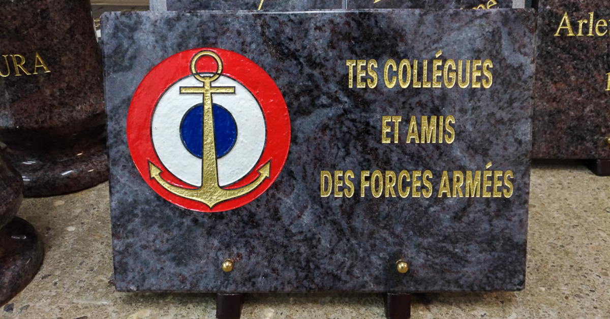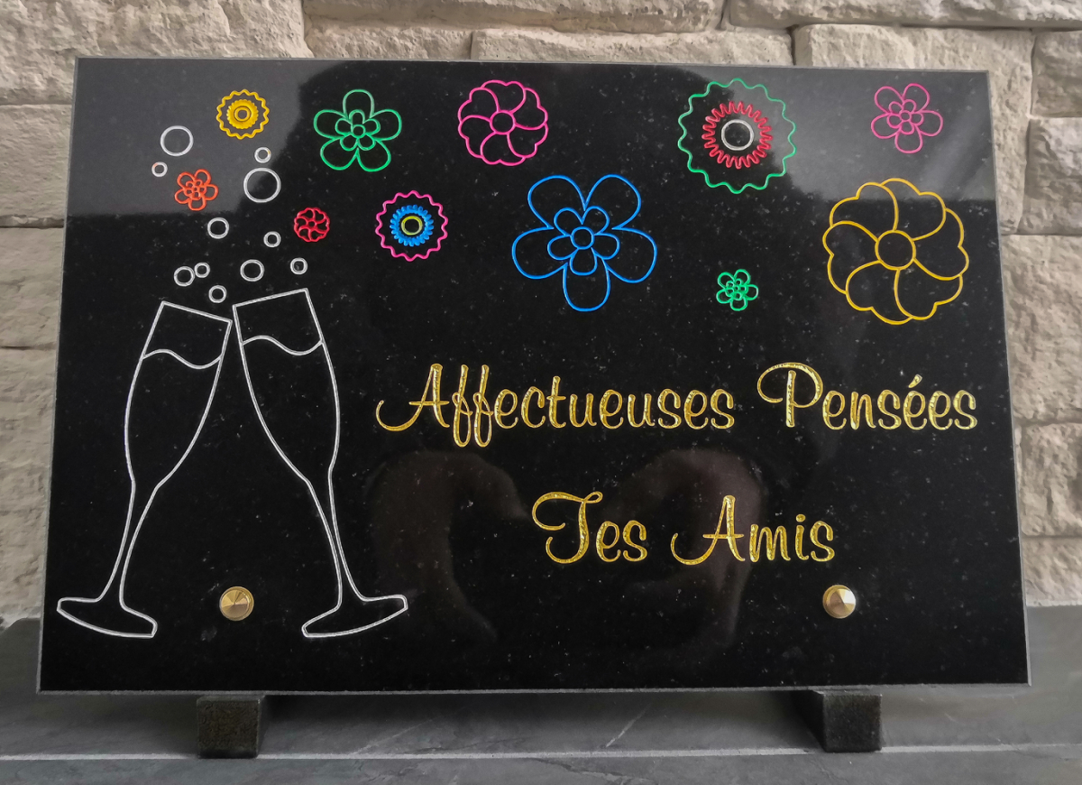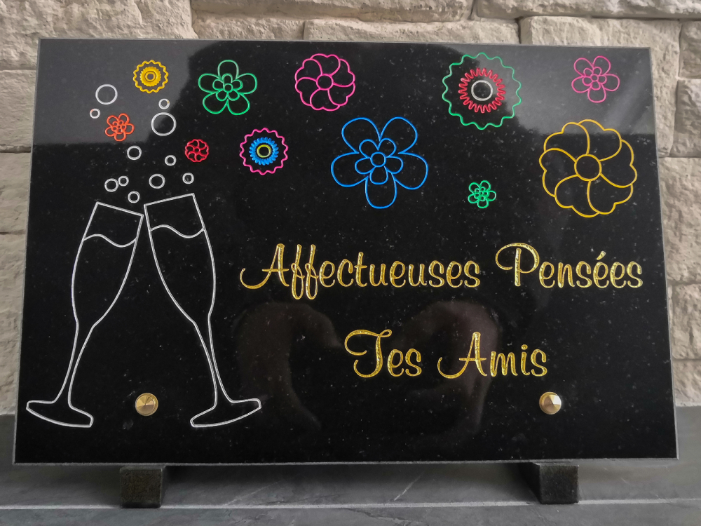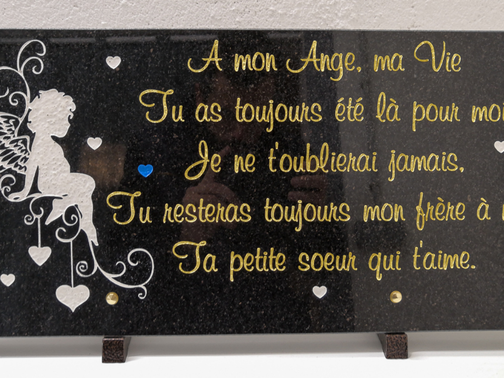 C'est pourquoi nous réaliserons ce projet ensemble pour que la plaque que vous souhaitez offrir soit exactement à la hauteur des sentiments que vous partagiez avec l'être aimé.