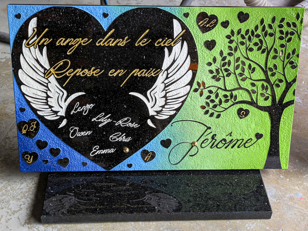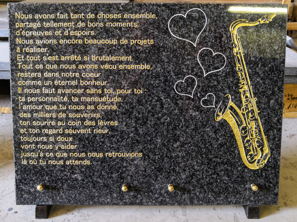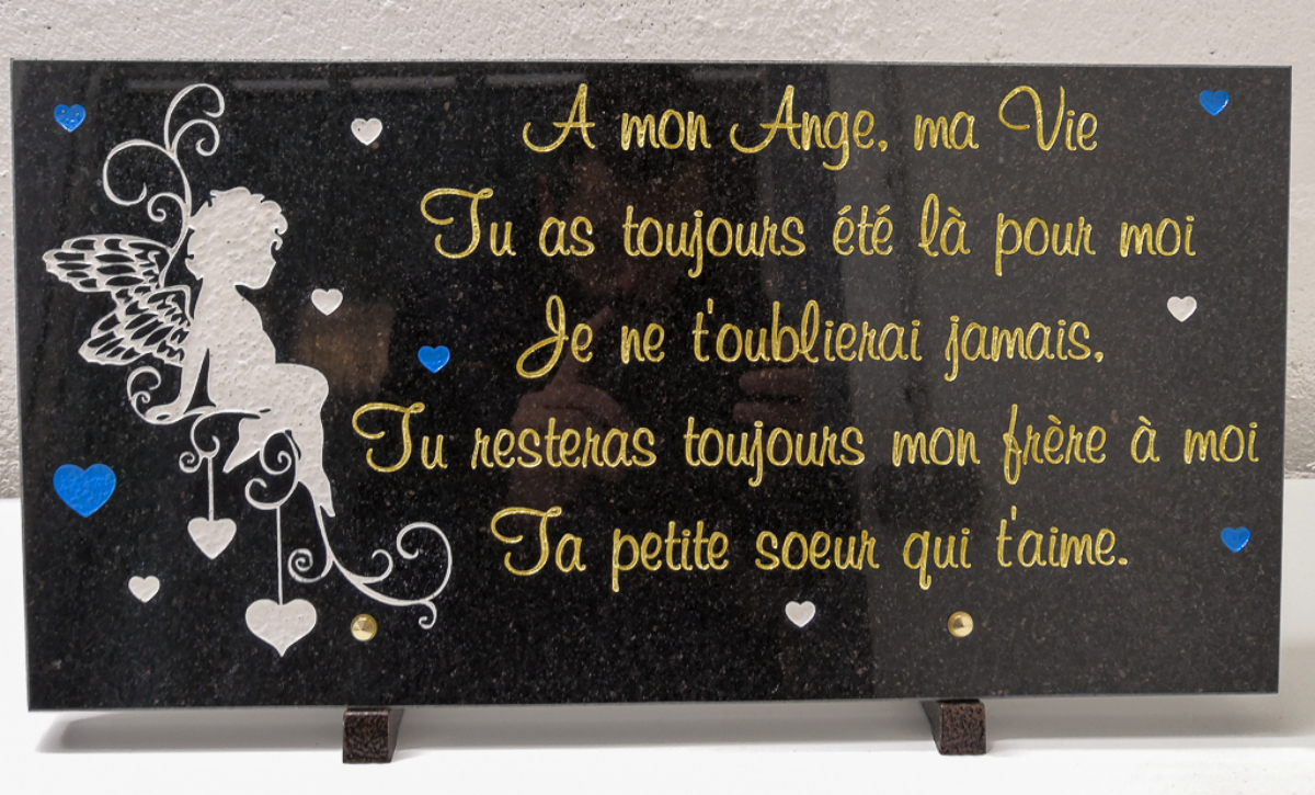 C'est pourquoi nous réaliserons ce projet ensemble pour que la plaque que vous souhaitez offrir soit exactement à la hauteur des sentiments que vous partagiez avec l'être aimé.