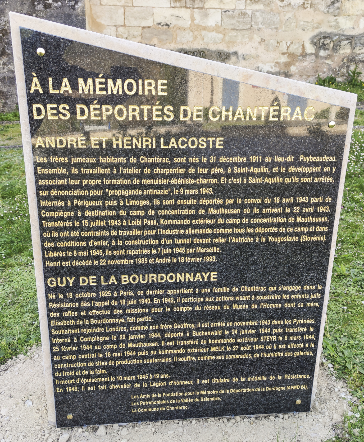 Une plaque commémorative en accord avec le monument en pierre a été réalisée et fixée sur le monument.
